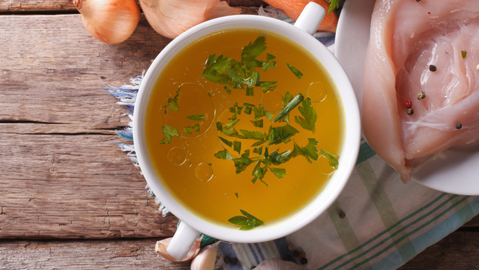 Se scegliamo un brodo di pollo, cerchiamo di far cuocere anche le ossa con il tessuto connettivo, che ne aumentano il potere antinfiammatorio.