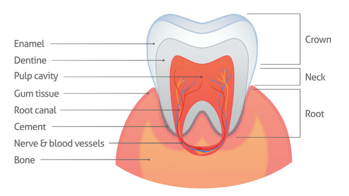 Finora si era pensato che i danni si fermassero allo smalto, ma questa nuova ricerca ha scoperto che colpisce anche la dentina, la parte del dente che si trova sotto lo smalto e il cemento. Costituisce le pareti della camera della polpa e dei canali radicolari. Il composto chimico contenuto nelle strisce rompe una proteina all’interno della dentina in frammenti così piccoli da renderla inconsistente, come se non esistesse più. Il tessuto della dentina impedisce ai cibi caldi o freddi di stimolare i nervi, non facendoci sentire né dolore, né la sensazione di sensibilità ai denti.