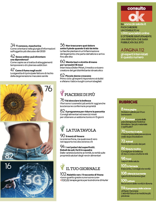 Il nuovo numero di OK Salute e benessere è in edicola, qui di seguito puoi leggere il Sommario del numero di Luglio 2020. Ti aspettiamo in edicola!