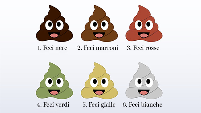 Dal bianco al nero, passando per giallo, rosso, verde: è il colore delle feci a segnalare con più chiarezza che qualcosa non va. A volte è solo il cibo a dare particolari sfumature, ad esempio verdastre dopo un’abbuffata di clorofilla con lattuga, spinaci, cavoli e alghe, o molto scure dopo aver assaggiato una ricetta al nero di seppia. Alcune tinte estreme, però, devono essere motivo d’allarme.